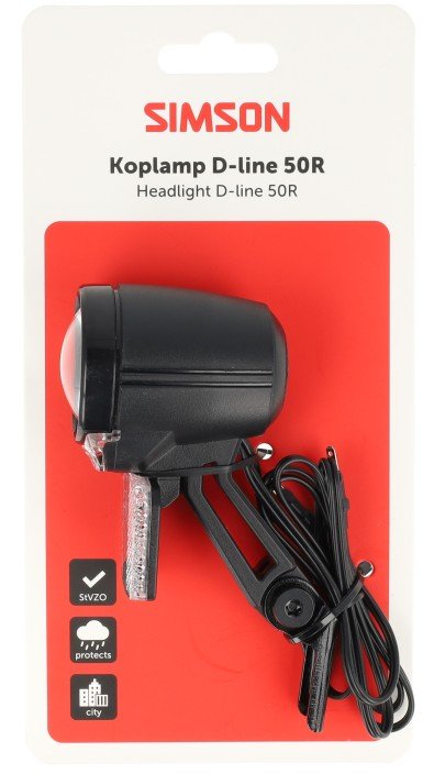 Simson koplamp Aurora D-line 50R naafdynamo 6 volt Een degelijke naafdynamo-lamp die 50 LUX levert. De dubbele lens zorgt dat het licht precies daar terechtkomt waar u het nodig heeft.